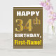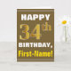 Bold, Brown, Faux Gold 34th Birthday w/ Name Card