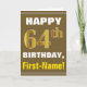 Bold, Brown, Faux Gold 64th Birthday w/ Name Card