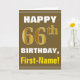 Bold, Brown, Faux Gold 66th Birthday w/ Name Card