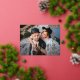 Modern foil save the date postcards featuring your horizontal engagement photo with "Save the Date" in a gold foil brush script. Personalize the front of the photo save the date postcard by adding your names, wedding date, and city/state. The back of the postcard features your return address, names, and wedding details such as your wedding date, wedding website, etc.
