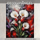 This stunning tissue paper for decoupage features an expressive arrangement of calla lilies with deep red and white petals, set against a dramatic background of rich crimson and soft, shadowy hues. The dynamic brushstrokes and bold contrasts create a powerful and elegant aesthetic, perfect for adding a unique artistic touch to your projects.