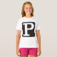 This cute girls letter P initial t-shirt is a fun way for your little one to show off her name. The clean and bold alphabet design is perfect for school days, playdates, or sports practice. Made for comfort and durability, this monogrammed top is a thoughtful birthday present for any girl who loves custom clothing. It offers a timeless look that never goes out of fashion.