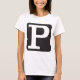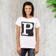 Make a statement with this classic womens letter P monogram t-shirt. This comfortable graphic tee features a bold serif initial, making it a versatile addition to your casual wardrobe. It is a great gift for moms, sisters, or friends who love personalized apparel. Wear it as a simple standalone piece or layer it for a collegiate inspired outfit that showcases your name with style.