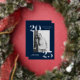 Modern graduation party invitations featuring the graduate's vertical photo framed in navy with 2025 in bold, silver foil lettering at the top left and bottom right corners. Personalize the front of the photo graduation party invites with the graduate's name and school name. The foil graduation invitation reverses to display your party details in white lettering with a navy background. The background color can be changed to a color of your choice with our edit design feature. The navy graduation party invites work perfectly for both high school and college graduation parties.