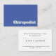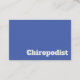 Chiropodist Business Card. Bold and clear typographic design business cards for a Chiropodist business. Designed to convey your professionalism in your Chiropodist chiropody and podiatrist foot care business. Blue and white.