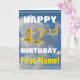 Bold, Cloudy Sky, Faux Gold 42nd Birthday + Name Card