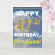 Bold, Cloudy Sky, Faux Gold 47th Birthday + Name Card