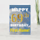Bold, Cloudy Sky, Faux Gold 69th Birthday + Name Card