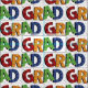 It's all about the bold colors here as your graduate steps out into the world. The word GRAD in four colors chopped into segments with a confetti background. Pattern of red, green, blue, yellow, black, and white in half-square triangles forms the border. Overall a great festive look for invitations or party supplies. Personalize with the graduate's name, school and class year. Matching products available.