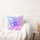 This bold and colorful soccer throw pillow for girls features a gray scale pattern of randomly arranged soccer balls in varying sizes blended with a customizable turquoise-blue-purple-pink color gradient filter (Miami) so that the dark soccer ball panels take on the colors of the color gradient - customize with her name and monogram - by katz_d_zynes