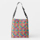 The bag features a colorful patchwork design with squares of the same size arranged in a grid pattern, creating a vibrant and eye-catching appearance.