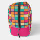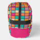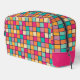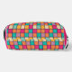 The cosmetic bag features a colorful patchwork design with squares of the same size. The squares are arranged in a grid pattern, creating a vibrant and eye-catching appearance.
