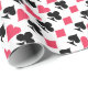 Hearts, spades, clubs and diamonds cover our glossy playing card gift wrap in a diagonal pattern. Our contemporary card suit wrapping paper is great for anyone who plays bridge, euchre, poled, rummy, hearts, spades, and even solitaire.