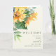 This bold country sunflower light yellow folded wedding program is perfect for your simple classic boho summer backyard barn wedding. Design features a bouquet of vintage watercolor yellow gold and rustic orange sunflowers, elegant modern sage green eucalyptus greenery, and a white ivory rose. The design is ideal for a casual outdoor minimalist fall foliage wedding. Please feel free to contact us with any questions regarding the product's design; cheers!