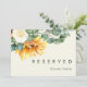 This bold country sunflower light yellow reserved sign is perfect for your simple classic boho summer backyard barn wedding. Design features a bouquet of vintage watercolor yellow gold and rustic orange sunflowers, elegant modern sage green eucalyptus greenery, and a white ivory rose. The design is ideal for a casual outdoor minimalist fall foliage wedding. Please feel free to contact us with any questions regarding the product's design; cheers!