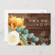 This bold country sunflower | wood wedding thank you postcard is perfect for your simple classic boho summer backyard barn wedding. Design features a bouquet of vintage watercolor yellow gold and rustic orange sunflowers, elegant modern sage green eucalyptus greenery, and a white ivory rose. The design is ideal for a casual outdoor minimalist fall foliage wedding. Please feel free to contact us with any questions regarding the product's design; cheers!