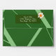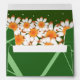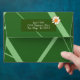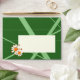 Make your envelopes as special as your wedding invitations . This one has a forest green color , sage stripes of different thickness , and a few daisies . There is a space designed for you to write the address and name of your guest by hand . (Or you can type them or use a label .) There is also an available template to add the name and the address of the senders . The inside of the envelope has pretty big white and orange daisies .