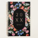 A beautiful planner featuring colorful watercolor Dutch flowers in blue, pink, mauve, and white on a black background. Personalize with your name and the year in the center of a pill shape frame.