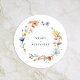 Introducing our Bold Elegant Floral Wedding Round Paper Coaster Design, a modern celebration of nature's artistry, featuring colorful floral watercolor arrangements in lovely hues of blush pink, navy and dusty blue, peach, and yellow with soft eucalyptus greenery beautifully set against a simple pristine white canvas with minimalist dark blue typography, creating a balanced look of timeless elegance and modern sophistication. Whether you're planning a botanical spring garden party, a sun-soaked summer celebration, or an ethereal fall soiree, this design is an effortless choice for couples seeking a polished yet lively backdrop for their love story. As with all of our designs, if you have any questions or special requests for coordinating or custom products for your wedding, please reach out to us.