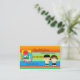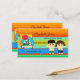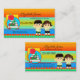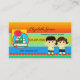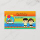 Business card featuring a colorful fun design with school supplies and happy children. Beautiful for a kindergarten or primary school teacher.