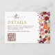 This classy wedding details card will surely brighten up your wedding day. The design features vibrant fall wildflowers in rich shades of burgundy, blush, aubergine and burnt orange. The lush floral arrangement captures the essence of autumn, while the sleek, modern typography adds a touch of timeless elegance. Use the text fields to personalize the card with your own wording and details. The background color is set to white, but feel free to choose a new fill color in order to match it to your wedding theme. If you want to change the font style, color or text placement, simply click the "Customize Further" button.