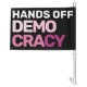 Make a powerful statement with the Hands Off Democracy two-sided car window flag. Featuring bold white “HANDS OFF” text across the top, with “DEMO” centered and “CRACY” along the bottom in a striking pink gradient, this design demands attention from every angle. Perfect for activists, organizers, and voters committed to defending democracy and election integrity.