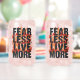 Ignite your spirit and live life to the fullest with this powerful "Fear Less, Live More" graphic. The text features a bold, fiery texture, creating an energetic and edgy look that's full of passion. It's the perfect motivational statement for anyone ready to embrace adventure and overcome their fears.