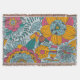 Bright, cheery, bold, whimsical, artsy best describes this fun throw blanket featuring big flowers of orange, blue, and pink with with teal leaves and vines.