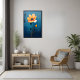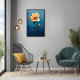 This striking AI-generated floral artwork poster print features a bold and abstract depiction of a vibrant flower against a deep blue background. The large, bright petals with hues of yellow and orange pop vividly, creating a dynamic contrast with the muted, textured backdrop. The minimalist design of the stem and buds adds a modern, abstract touch, while the color palette evokes warmth and energy. This piece effortlessly blends contemporary art with nature, making it a captivating centerpiece for any room. This modern floral artwork stands out with its unique combination of vibrant colors and minimalistic design. The textured blue background adds depth and character, giving this piece an elegant yet bold feel. It’s ideal for living rooms, bedrooms, and workspaces that need a splash of color and artistic flair. This artwork is perfect for brightening up homes and workspaces, making it a versatile addition to modern or eclectic interiors. It's also an excellent gift for housewarmings, birthdays, or special occasions like Mother's Day or springtime celebrations.