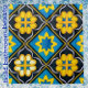 This large tile pattern is turquoise, golden yellow, sunflower, white, cream and blue black. The tiles are comprised of floral shapes, scrolls, hearts, and squares. Transform your bath with this bold beautiful pattern in rich bright colors.