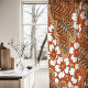 Elevate your space with this striking sheer curtain, featuring a bold floral and leaf design inspired by traditional Japanese art. The vibrant burnt orange backdrop highlights intricate white flowers with deep red centers, surrounded by earthy brown and beige leaf motifs. The combination of rich, warm tones creates a lively yet sophisticated look, perfect for adding a touch of artistic flair to any room. This curtain is ideal for those seeking to infuse their space with cultural charm and nature-inspired beauty, while embracing an elegant, earthy palette.