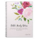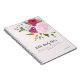 A personalized Bible Study notebook featuring on the front cover a large bouquet of watercolors in bright pink, the phrase "Bible Study Notes " in dark grey hand lettered font, with the Bible verse “The grass withers, the flower fades, But the word of our God stands forever.”