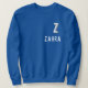 Bold white fonts on a personalized blue sweatshirt . Easy to personalize it now with her monogram and name . From the store of lumirala .