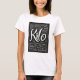 This T-shirt design features the word "Kilo" in a bold, playful cursive typography. The white lettering stands out sharply against the deep black background, creating a striking contrast that emphasizes the fun and energetic vibe of the design. The cursive style adds a touch of elegance and flair, making this shirt both stylish and eye-catching. Perfect for those who want to wear a simple yet impactful design that’s full of personality.
