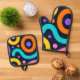 Add instant energy to your space with this bold geometric Oven Mitt & Pot Holder Set . Featuring vibrant circles and flowing shapes on a dark background, this design is playful, modern, and eye-catching. Perfect for contemporary interiors, creative studios, or anyone who loves colorful statement décor.