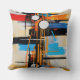 Add a splash of retro-modern flair to your sofa with this stylish throw pillow. The design showcases an energetic abstract pattern of intersecting lines, bold circles, and rich orange and blue brushstrokes. It is the perfect decorative accent for eclectic, mid-century, loft, or contemporary interiors.