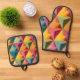 Bold Geometric Triangle Pattern Oven Mitt & Pot Holder Set
