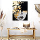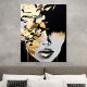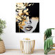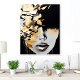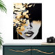This captivating acrylic wall art features a bold abstract interpretation of a woman's face with rich gold accents and a dramatic black background. The interplay of textures and metallic shimmer creates a luxurious and modern aesthetic. Perfect for contemporary spaces, this piece brings elegance and intrigue to living rooms, offices, or bedrooms. Its peel-and-stick design ensures effortless application and repositioning.
