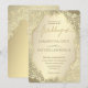 This wedding invitation radiates pure golden elegance, presented without the distraction of secondary colors. The entire design is framed in a detailed damask pattern, finished in shimmering gold that stands out with regal beauty. Its ornate flourishes and carefully sculpted border highlight the central text, giving it both grandeur and refinement. The golden palette alone makes this invitation feel timeless, powerful, and bold—perfect for couples who want their celebration to be marked with richness, sophistication, and an unforgettable golden glow.
