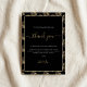 Add a touch of luxury to your wedding reception with these personalized thank you table cards, featuring an elegant black background and a sophisticated gold fern leaf pattern. Each card is beautifully styled with graceful script and modern typography, creating a refined atmosphere perfect for family and friends. Place these cards at each table setting to express heartfelt gratitude and make every guest feel special customize with individual names and appreciation messages. The printed gold effect lends a chic, glamorous look, ideal for a stylish celebration honoring your newlywed journey.