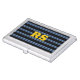 Bold Gold Monogram, Name, Blue Lines on Black Business Card Case
