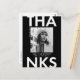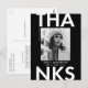 Trendy, modern graduation thank you postcard featuring the graduate's photo with "Thanks" in bold white lettering and black background. Personalize the front of the photo graduation thank you postcard by adding the graduate's name, school name, and graduation year. The back of the graduation photo thank you card features your return address with space for your typed or handwritten message.