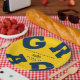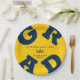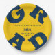 Bold GRAD Blue on Maize Yellow Graduation Paper Plates