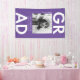 Custom graduation banner featuring "Grad" in bold white lettering with a purple background or color of your choice. Personalize the photo graduation banner by adding the graduate's name, school name, and graduation year. The trendy graduation banner is perfect to display at your graduate's high school or college graduation party!