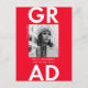 Invite guests to celebrate the grad with our modern photo graduation invitation postcards. The graduation invitations feature the graduate's photo with "Grad" in bold white lettering against a red background. Personalize the front of the photo graduation invites by adding the graduate's name, school name, and graduation year. The graduation postcard reverses to display your return address and graduation party details.