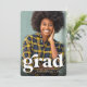 With a bold retro grad in white, this vertical one-photo card is the perfect way to announce your graduate to family and friends. The vintage styling is subtle and simple for this graduation announcement and perfectly on trend for this graduating class. The back of this card is a classic kelly green with a speckled texture. The color can be changed by clicking "customize further."