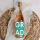Personalized graduation wine labels featuring "Grad" in bold white lettering with a turquoise background. Personalize the modern graduation wine labels by adding the graduate's name and graduation year. The modern graduation wine labels are perfect for graduation parties!