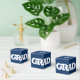 GRAD in bold white lettering wraps around the front of these dark blue 2" square graduation party favor boxes with your name and thank you message on the top.