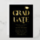 Elegant graduation party invitation template for high school or college graduates! The gold typography text against the black background says "GRADUATE" in bold retro font with a graduation cap on top.