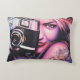 Bold Grafitti Woman with Camera Monogram Accent Pillow
